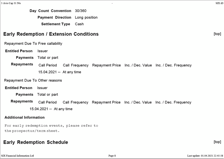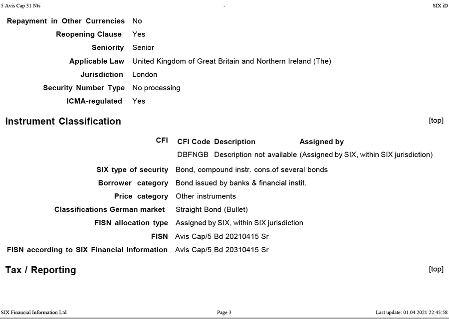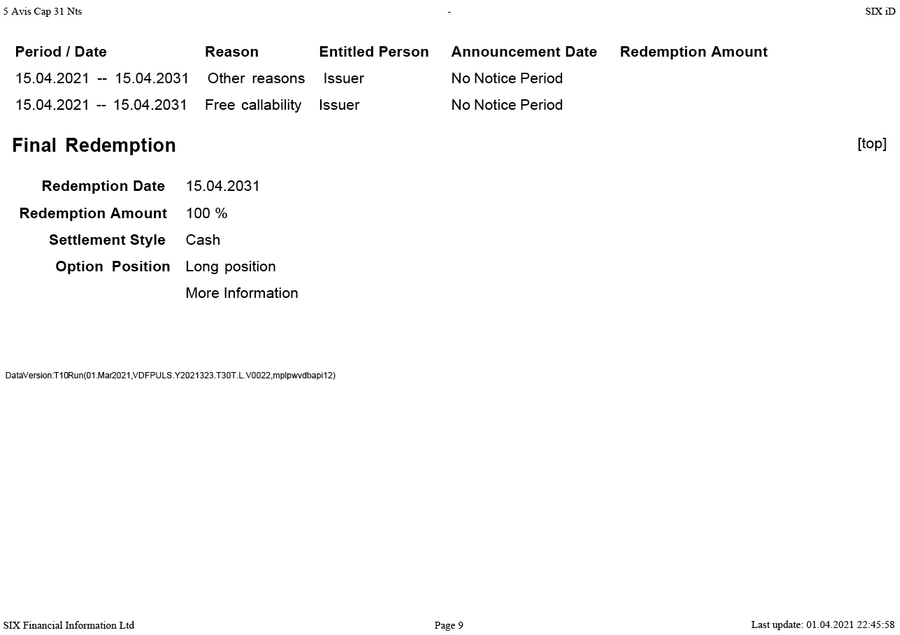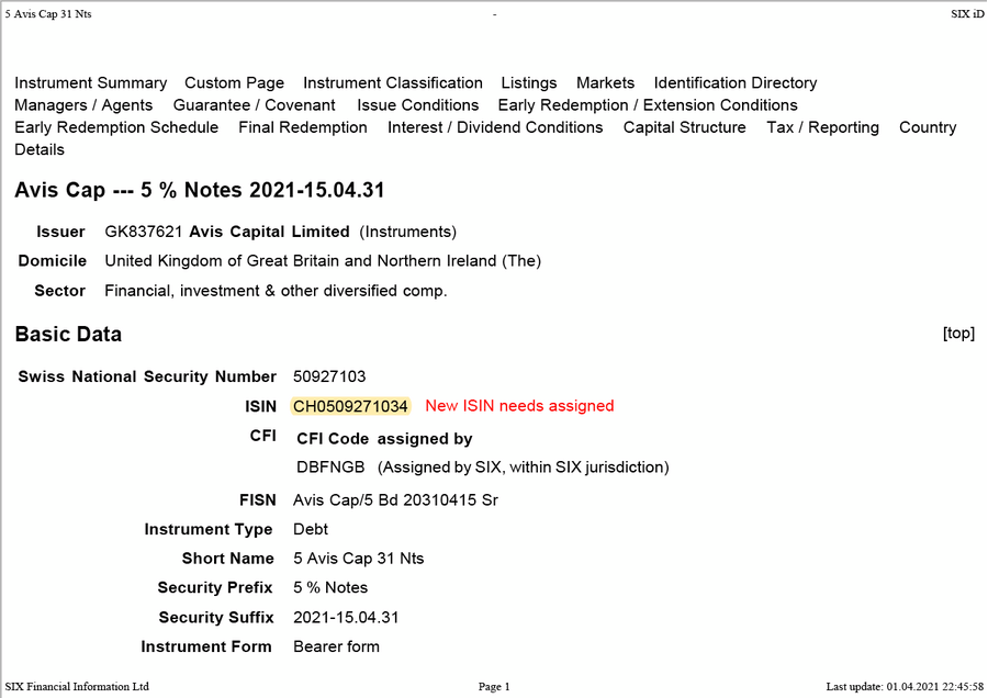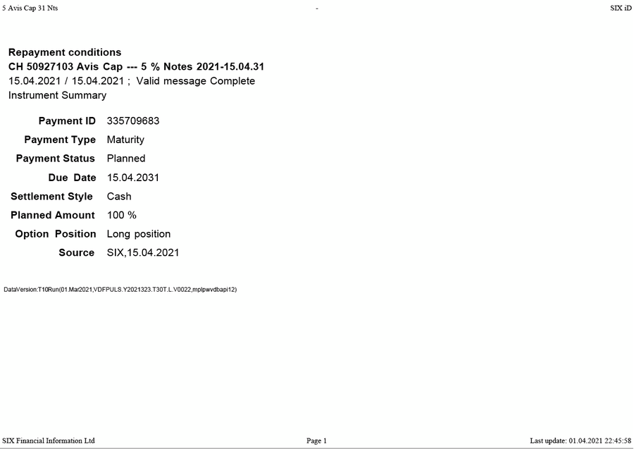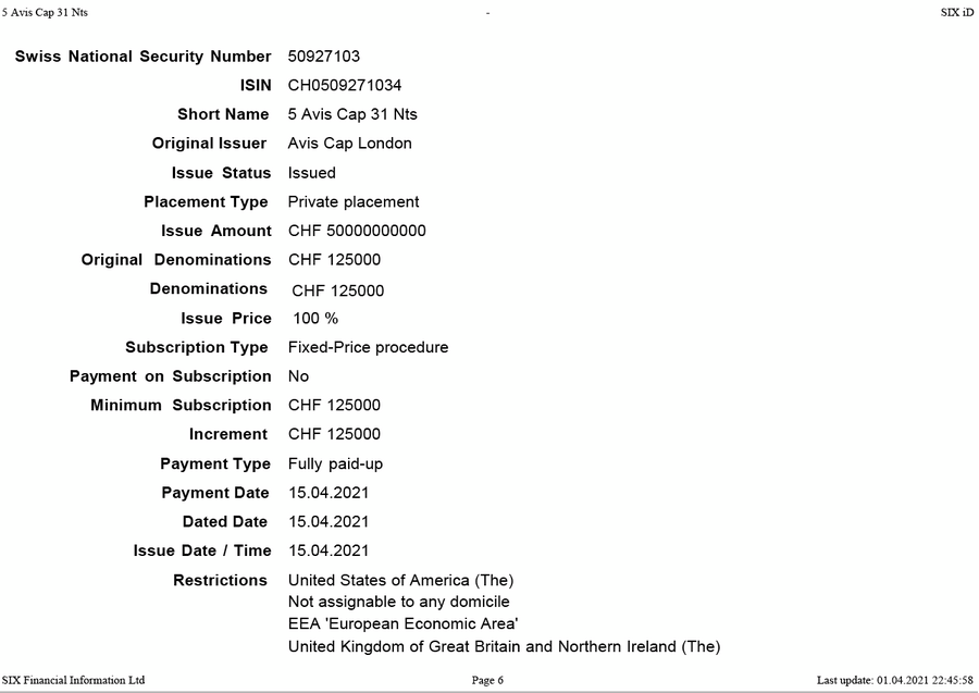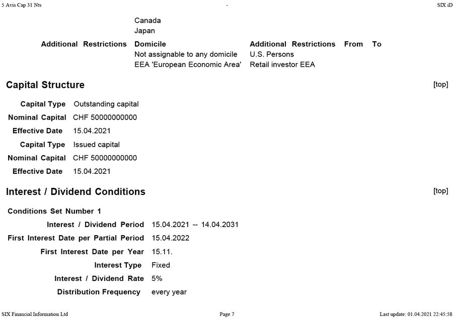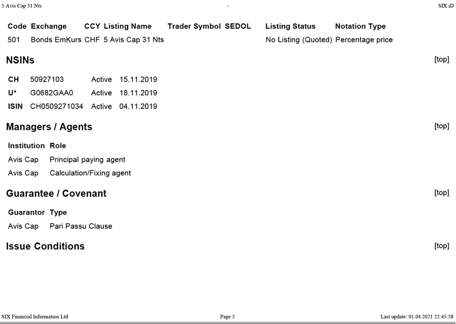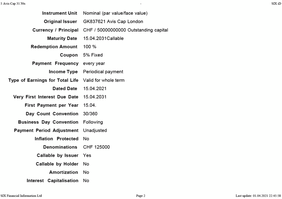 Option AVIS Capital CHF MTM 5 2026 Green Bond