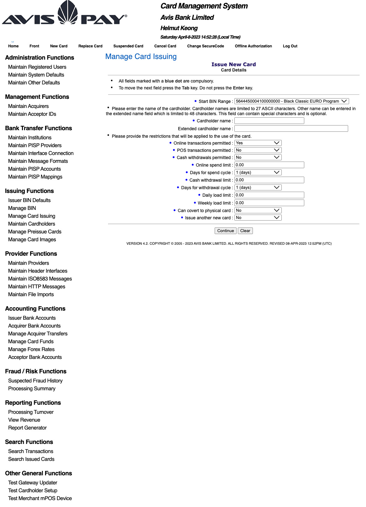 Bank SWITCH development worldwide for the unique Art's of AVIS Card's functionality and acquiring