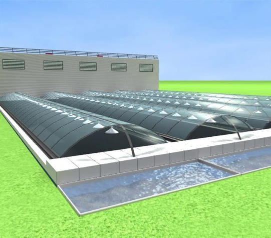 One Modular Production Unit 140m x 6m x 6m for 250 T Fish / year. Including Processing Building. Projects with 4 units of 250.000 tones modules, the building will be adapted on size.