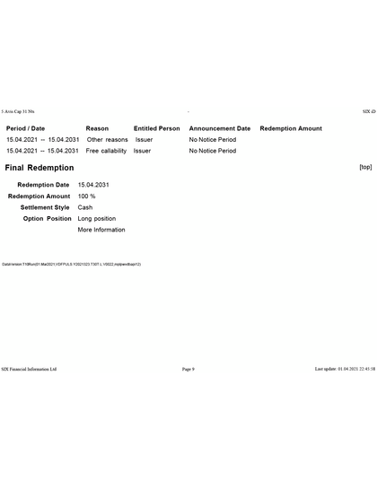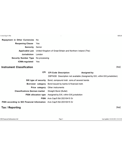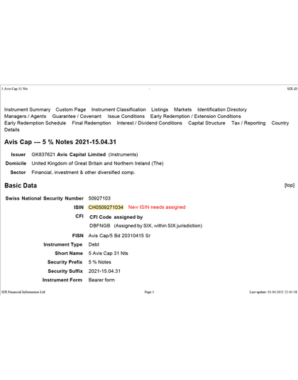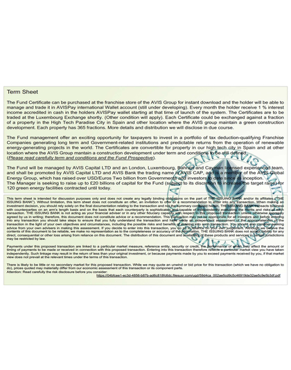 Option AVIS Capital CHF MTM 5 2026 Green Bond