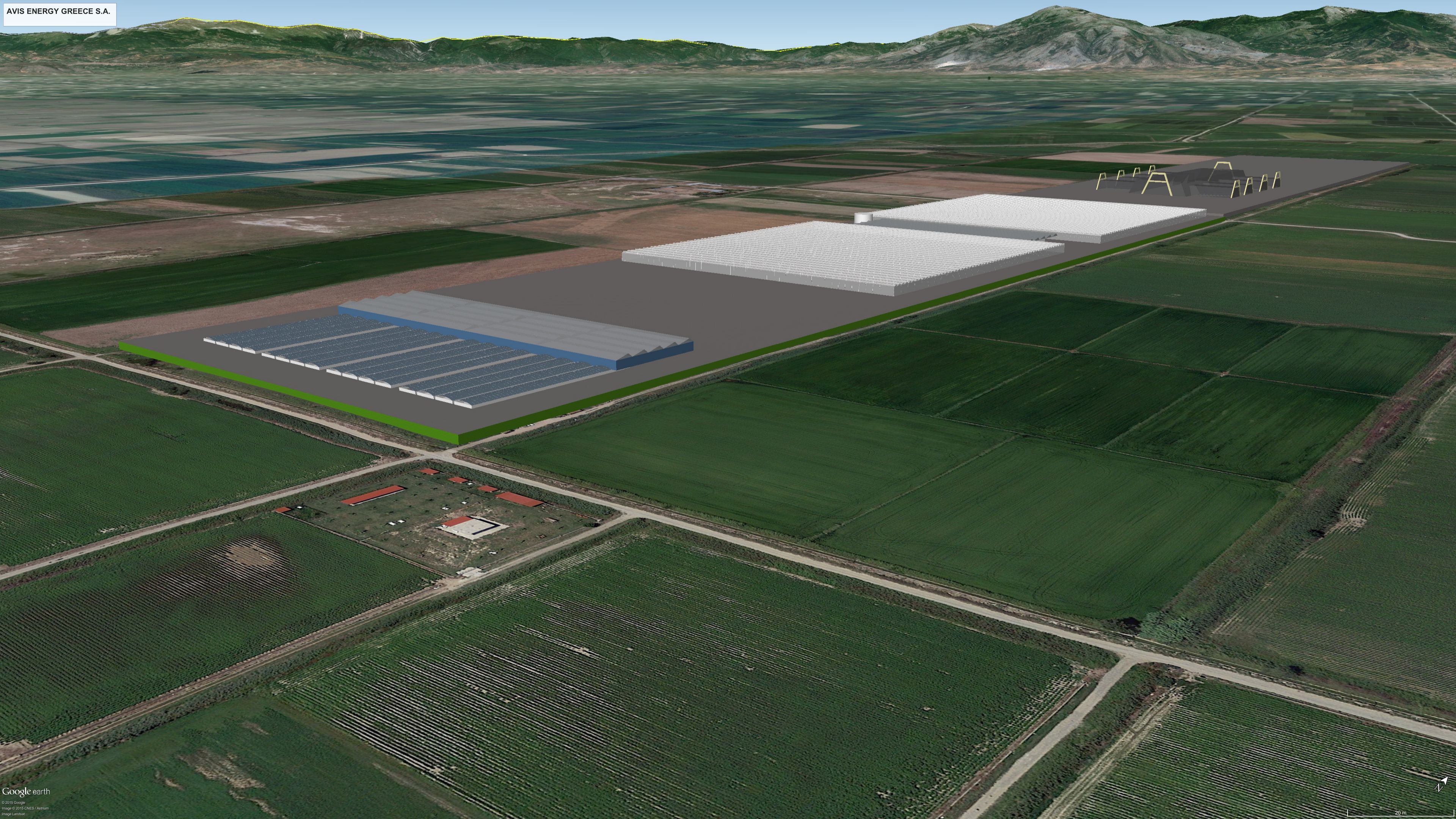 30 Ha high-tech glass greenhouse with solar panels, the installation will consist of a cooperation of a combined heat and power station. With a total capacity of producing 50 MWel and with synthetic diesel production of 8 reactor tubes each 2,000 l each hour utilizing the AVIS BML catalytic de polymerization conversion process of unsorted municipal waste to 350,000 MT per year.