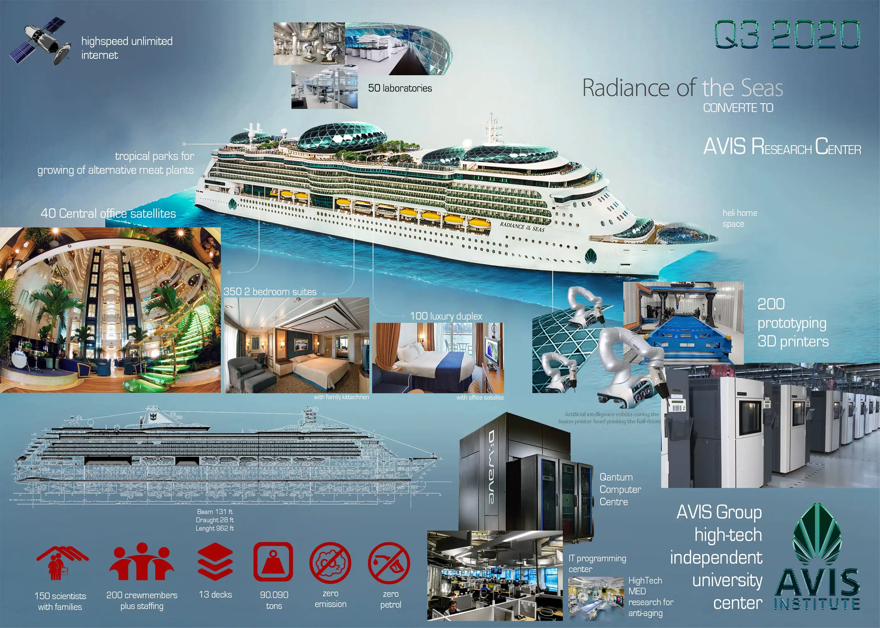 AVIS fleet command Prototyping production centre with 40 batteries of 3D printing artificial intelligence robots 35 high-tech laboratories & stress test centre