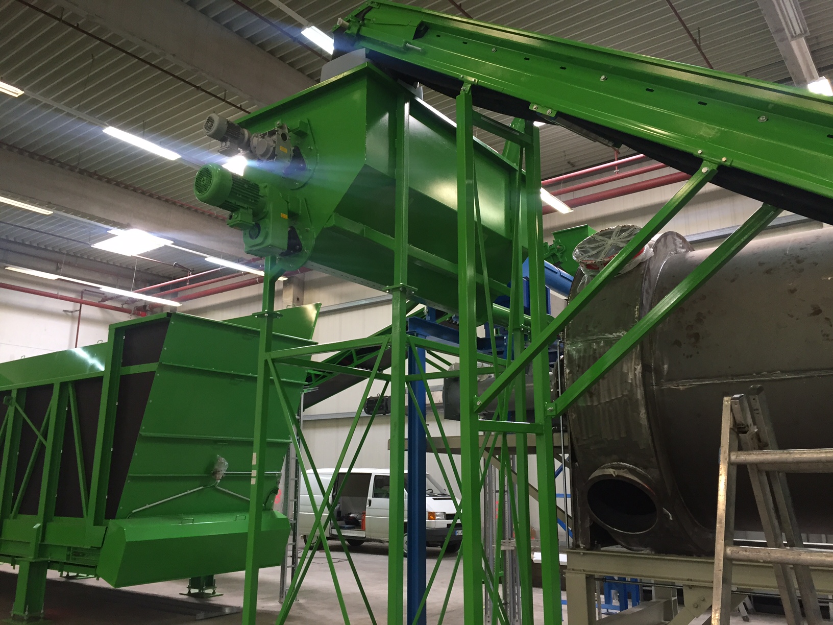 - Entry of the mixture in a horizontal reactor with stirrer (0.5 - 4.0 rpm)